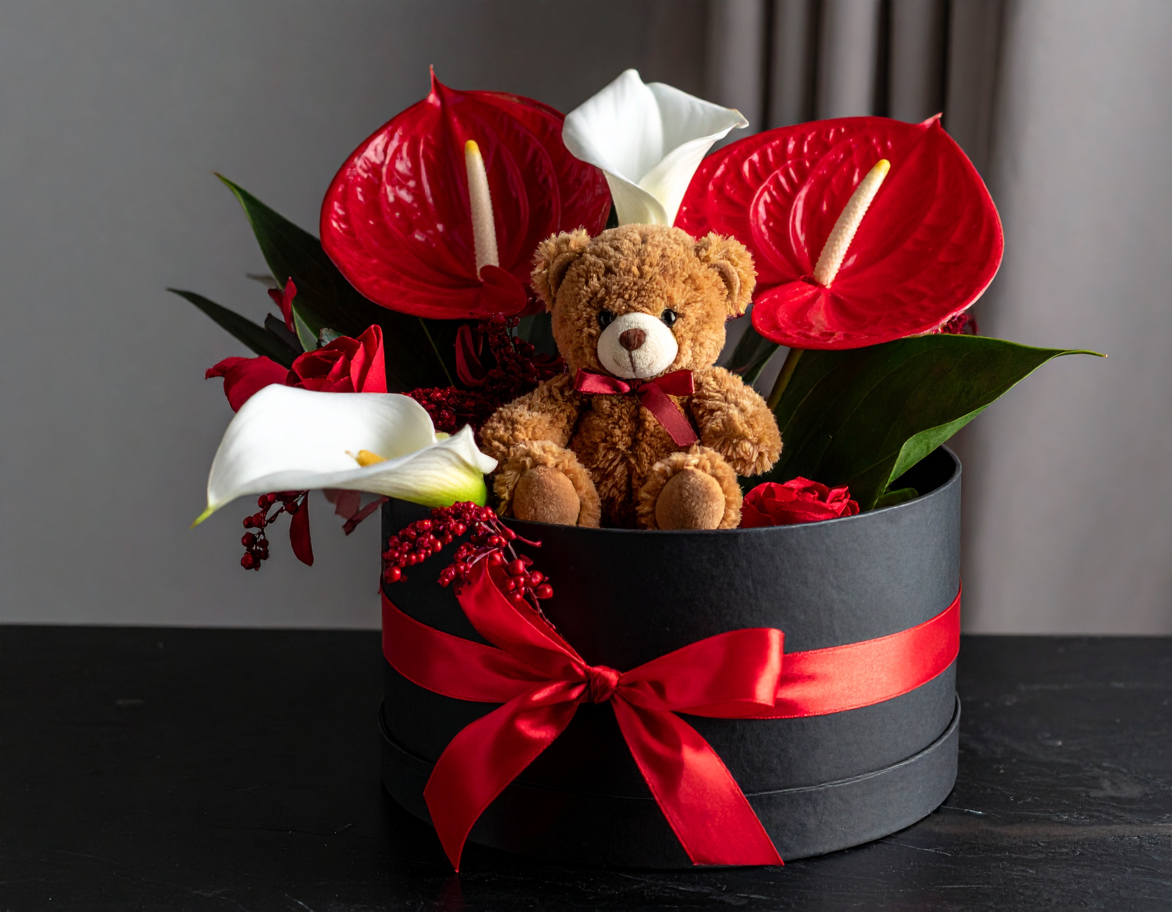 מארז פרחים ודובון יובי