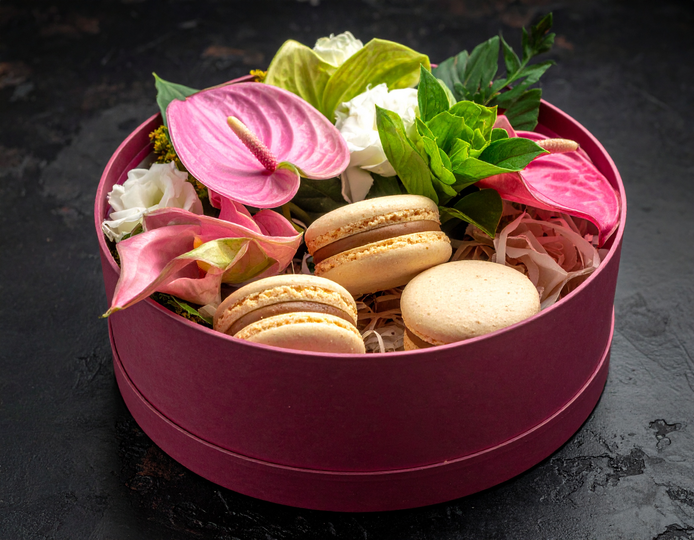 מארז פרחים ועוגיות שקד