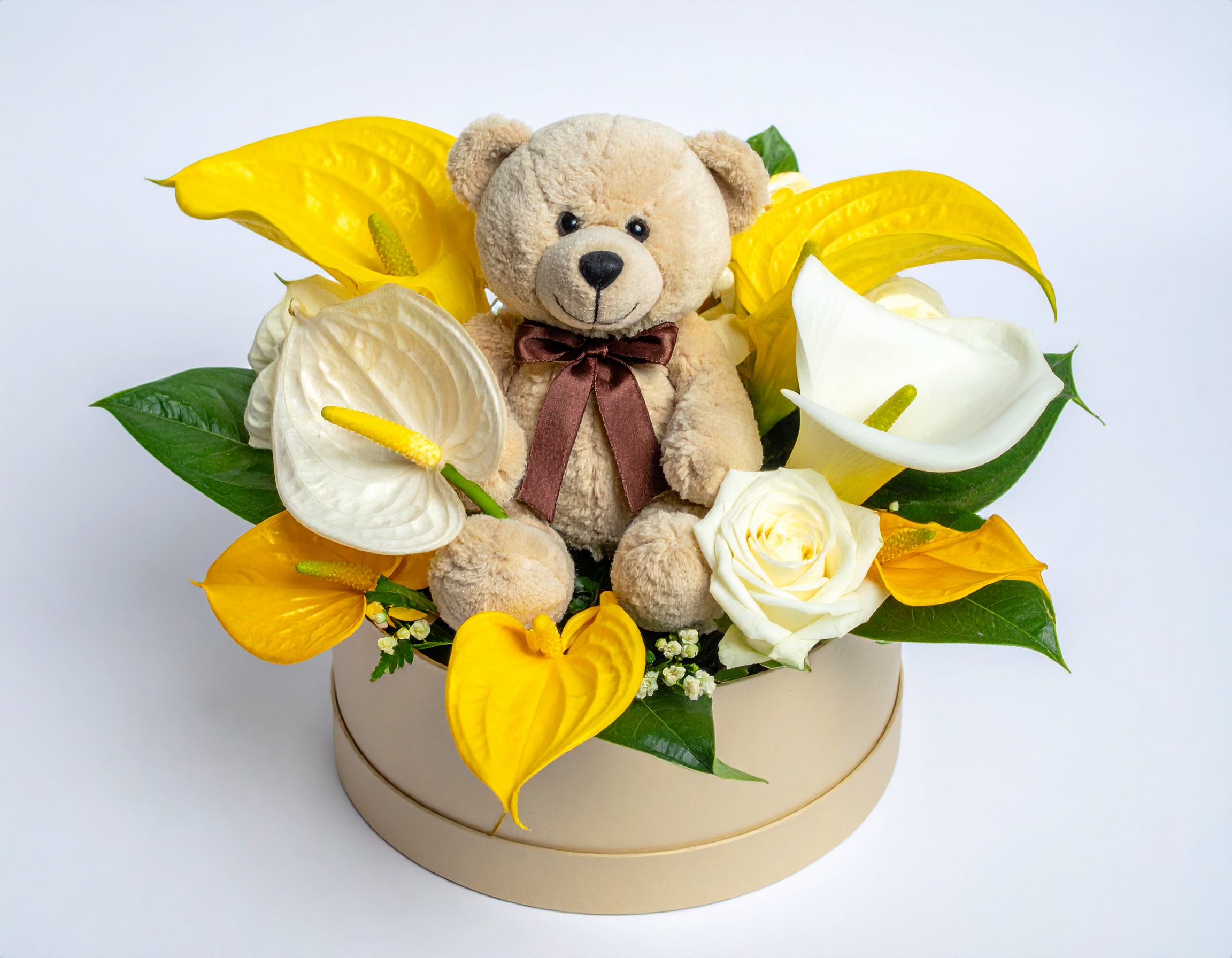 מארז פרחים ודובון מירה