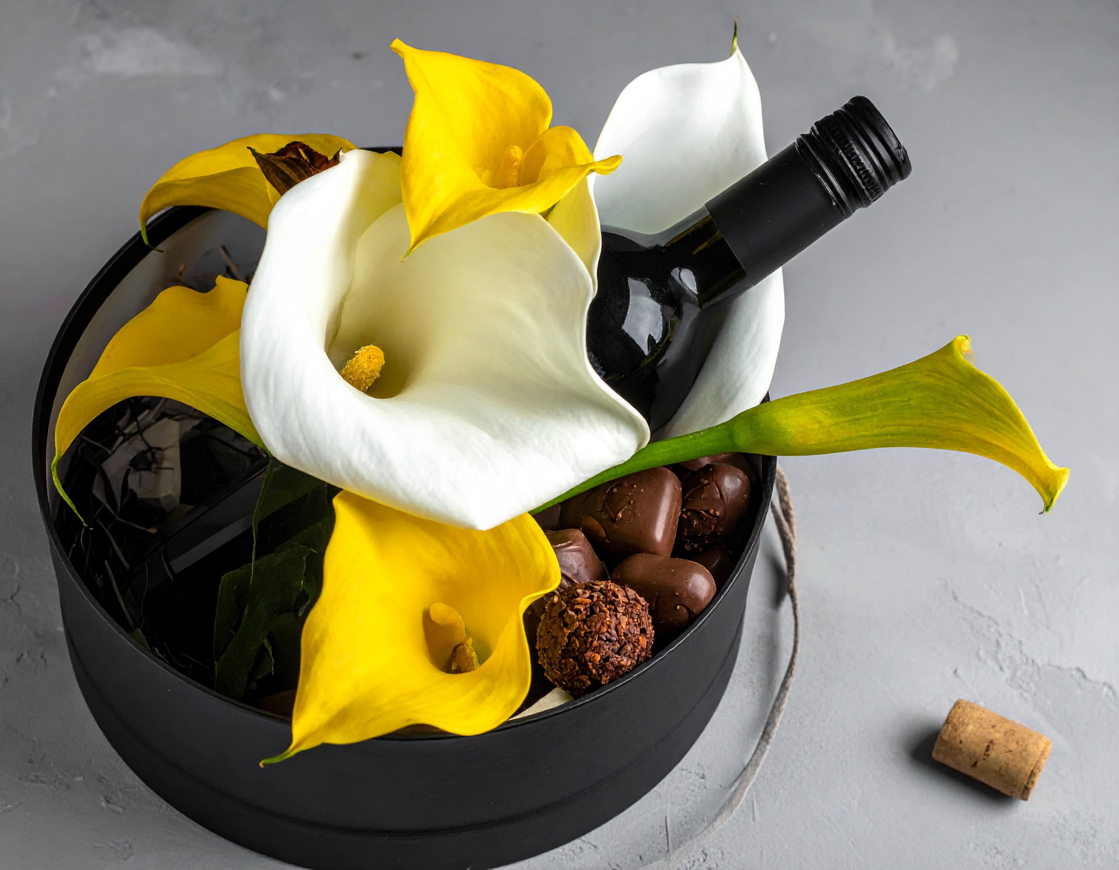 מארז יין ופרחים שדה זהב